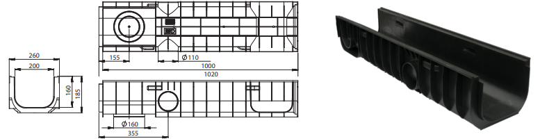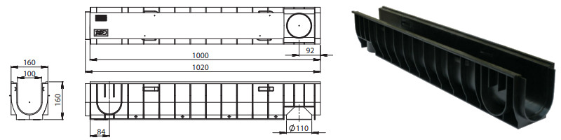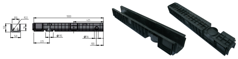 Пластиковые лотки (каналы) являются частью системы ливневого водоотвода и служат для отведения воды с поверхности. При помощи системы линейного водоотвода можно осушить дорожки, дороги, площадки перед гаражом, площадки у ворот при въезде на дачный участок.Водоотводные лотки устанавливаются на уплотненное основание, заливаются бетоном снаружи, чтобы ограничить воздействие грунтов на боковые стенки лотка при замерзании и размерзании земли. Площадка вокруг лотков выполняется с таким уклоном, чтобы вода утекала в лоток. Общая линия лотков выполняется с уклоном так, чтобы вода самотеком уходила в крайний лоток. Там она либо сразу попадает в ливневую канализацию, либо сначала в пескоуловитель, который служит для сбора мелкого мусора и различных взвесей (песок, частицы грунта), предотвращает их попадание в трубы канализации и образование засоров в системе слива. Сверху лотки и пескоуловители закрываются защитно-декоративными дренажными решетками.