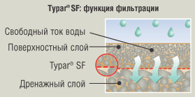 Основными функциями, выполняемыми геотекстилем Typar ® SF являются разделение и фильтрация. В известной степени Typar ® SF обладает и армирующим эффектом, что позволяет выполнять функцию укрепления и упрочнения. Благодаря своим уникальным свойствам Typar ® SF имеет оптимальные характеристики и обладает превосходными качествами при выполнении указанных функций в сравнении с аналогичными материалами.