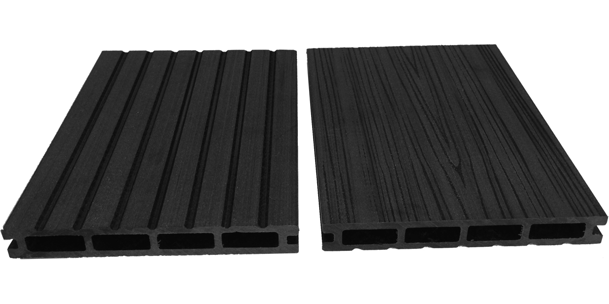 Универсальная доска из ДПК производится в двух базовых цветах: коричневом и черном